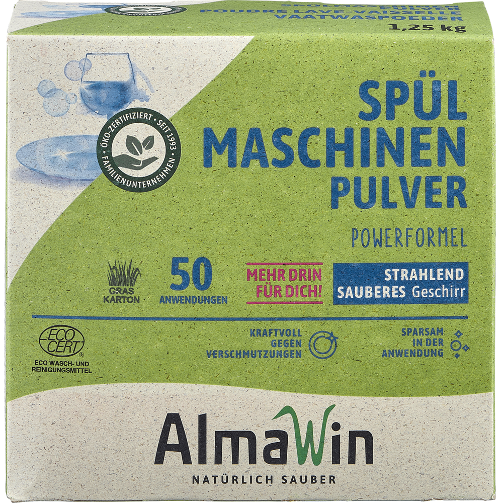 Eco Detergent Pudra pentru Masina de Spalat Vase 50 spalari AlmaWin 1,250 kg - Fara enzime, fosfati si agenti agresivi.