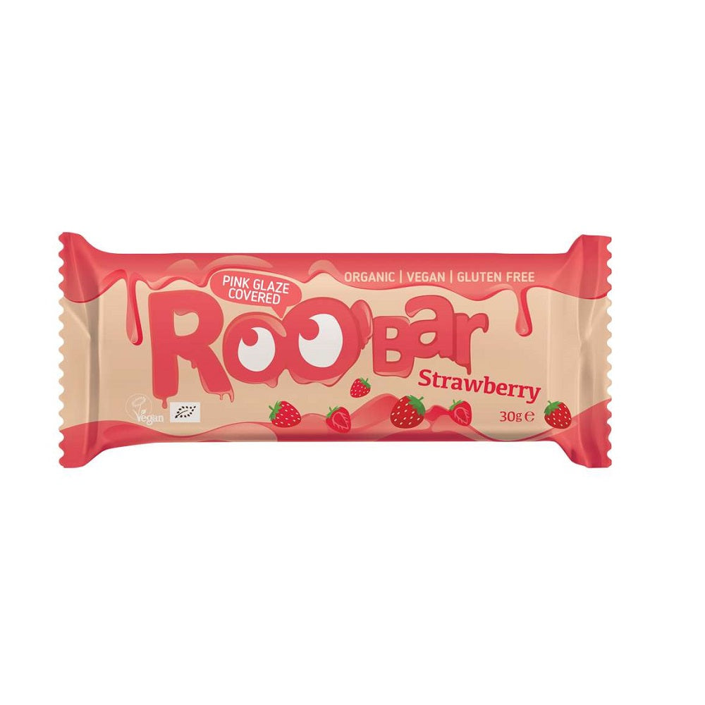 Bio Baton cu Capsuni si Glazura Roz Vegan Fara Gluten Roobar 30 g