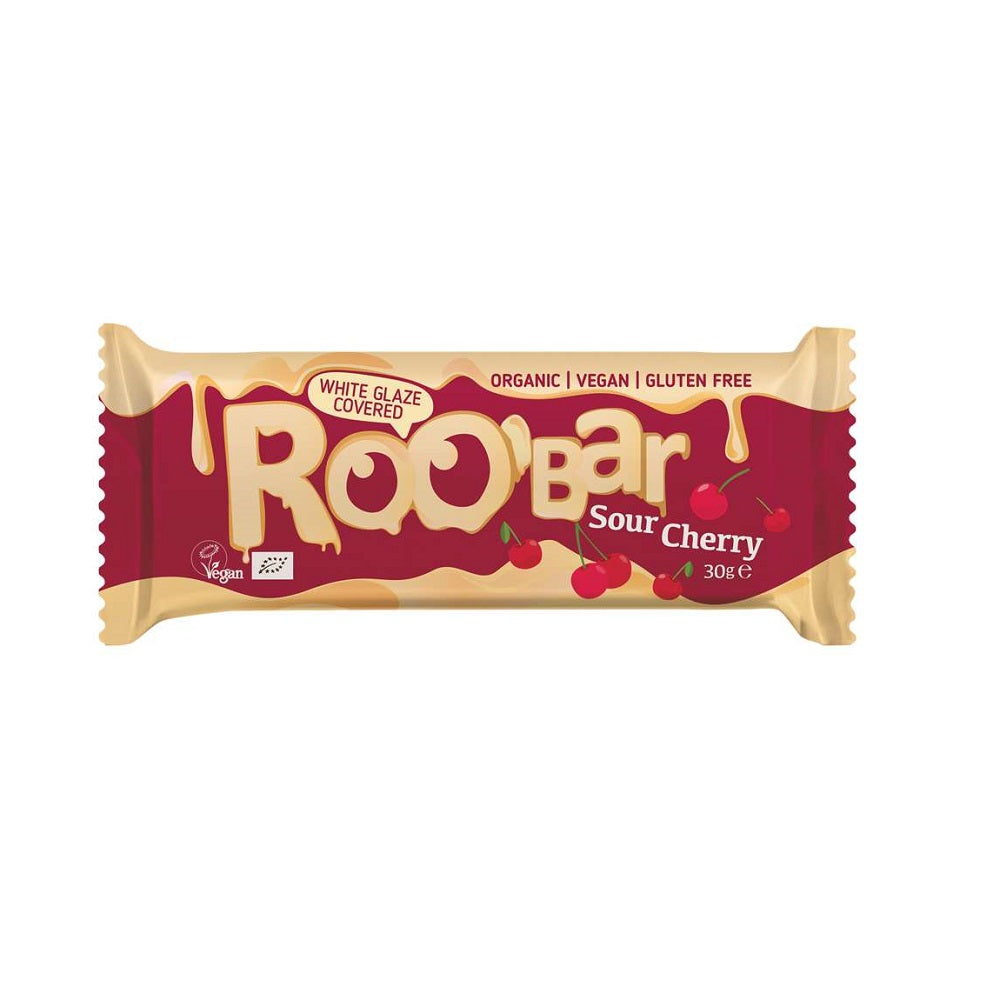 Bio Baton cu Visine si Glazura Alba Vegan Fara Gluten Roobar 30 g