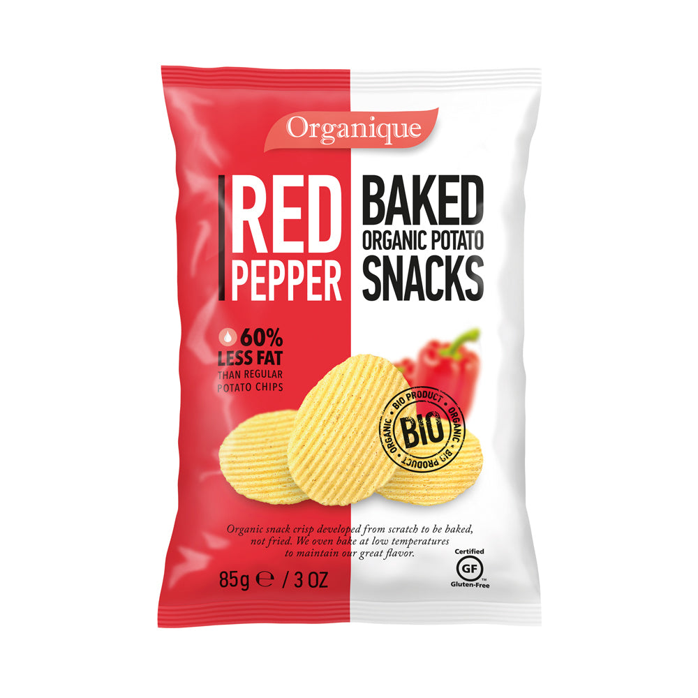 Chips de cartofi cu ardei rosu Organique by McLloyds. Pentru iubitorii de gust original de chips-uri de cartofi. Tentatie utila pentru viata de zi cu zi. Acest chips organic nu este prajit si contine numai ingrediente benefice.