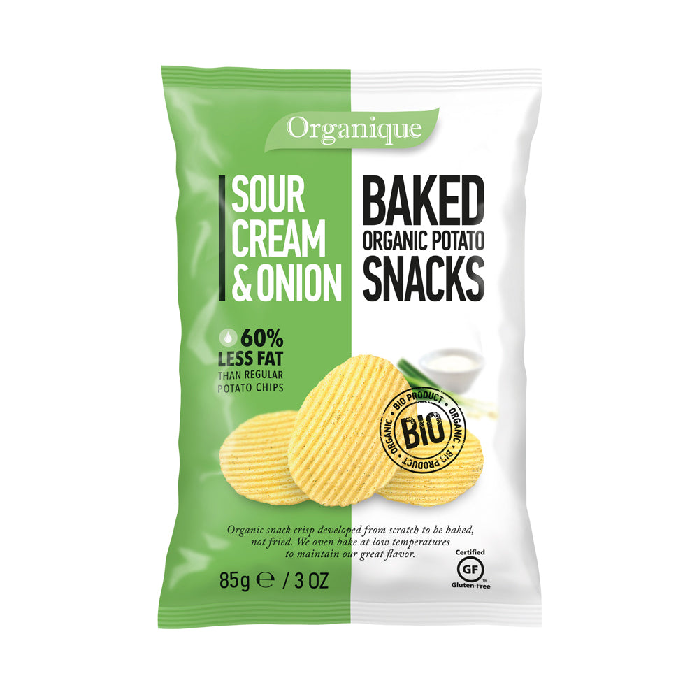 Chips de cartofi cu smantana si ceapa Organique by McLloyds. Pentru iubitorii de gust original de chips-uri de cartofi.Tentatie utila pentru viata de zi cu zi. Acest chips organic nu este prajit si contine numai ingrediente benefice.