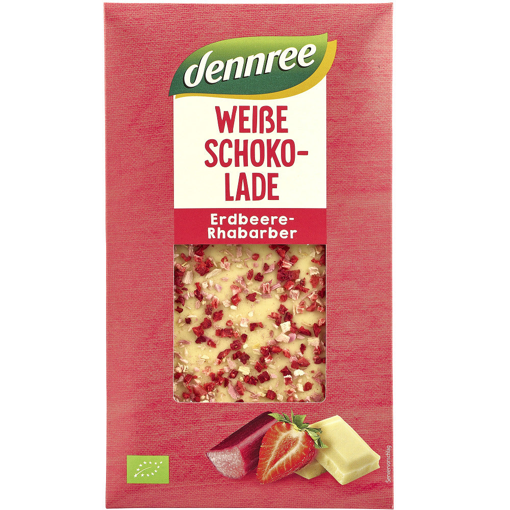 Rubarba cu căpșuni si ciocolată albă organică oferă răsfăț pur. Ciocolata albă dennree cu căpșuni-rubarbă este o compoziție unică de ciocolată albă fină, care se topeste în gură și bucăți aromate de căpșuni și rubarbă. Acestea sunt împrăștiate cu mâna pe barele nobile și subțiri. Bucurați-vă de gustul fructat proaspăt.