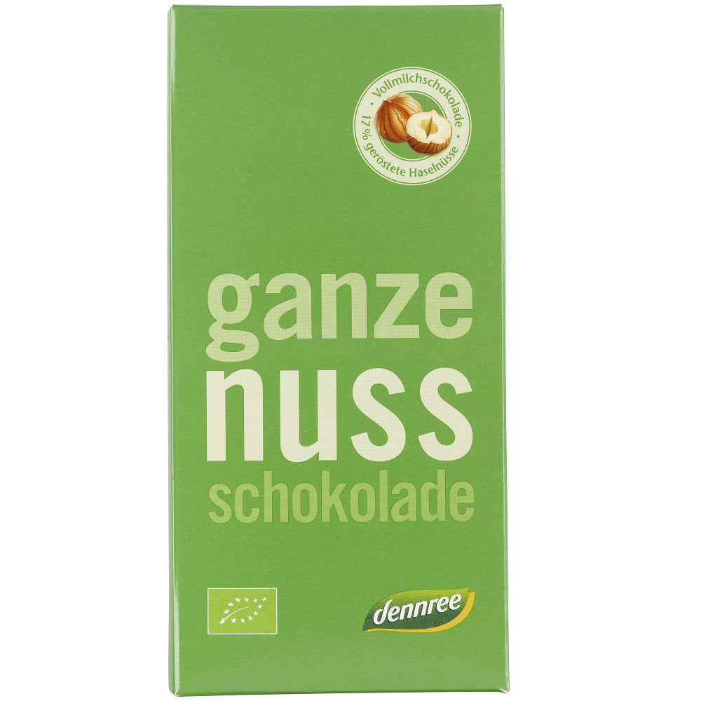 Bio Ciocolata cu Lapte si Alune Intregi Dennree 100 g