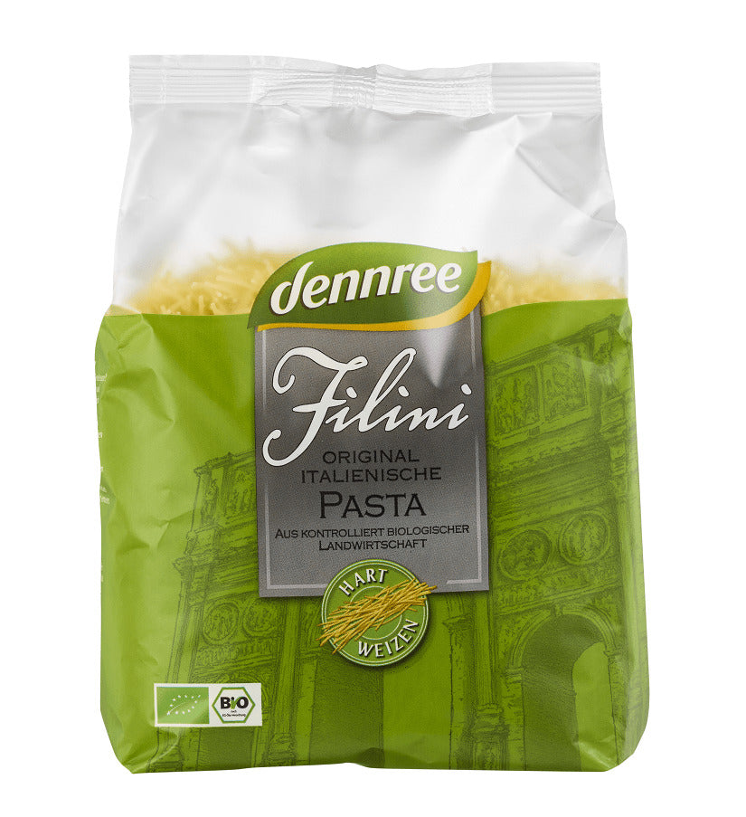 Filini de grâu dur organic oferă plăcere pură. Pentru grâul dur Dennree Filini, numai grâu dur selectat din agricultura ecologică controlată este utilizat și procesat ușor conform rețetei originale italiene. Bucurați-vă de gustul excelent a pastelor Dennree. Încercați și celelalte tipuri delicioase din familia de paste Dennree.