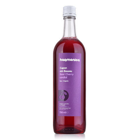 Siropul de visine de la Harmonica este fabricat din visine bio,presate la rece,indulcite cu zahar brut din trestie.