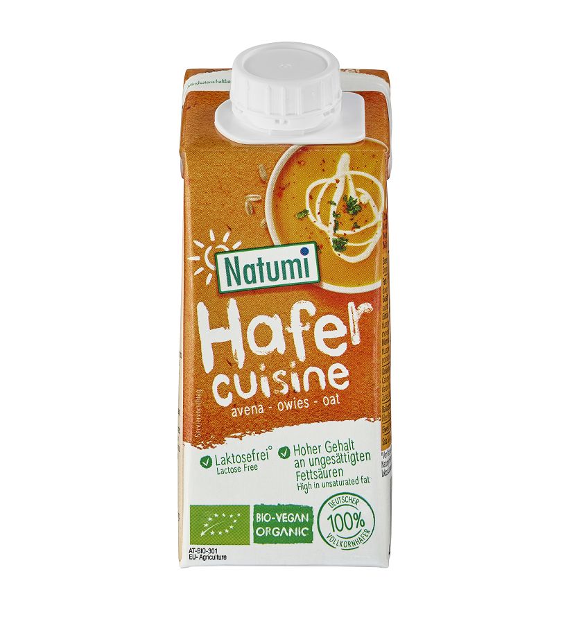 100% ulei vegetal.Crema obtinuta din ovaz integral german cu dulceata naturala usoara, fara zahar adaugat - versatil pentru rafinarea supelor, sosurilor, deserturilor si a prajiturilor.