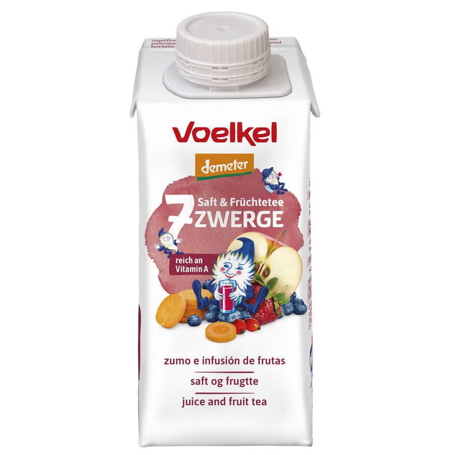 Voelkel 7 Zwerge suc pentru copii - sucul nostru original, multi-fructe cu suc de morcovi, 89% continut de fructe, 11% suc de morcovi.