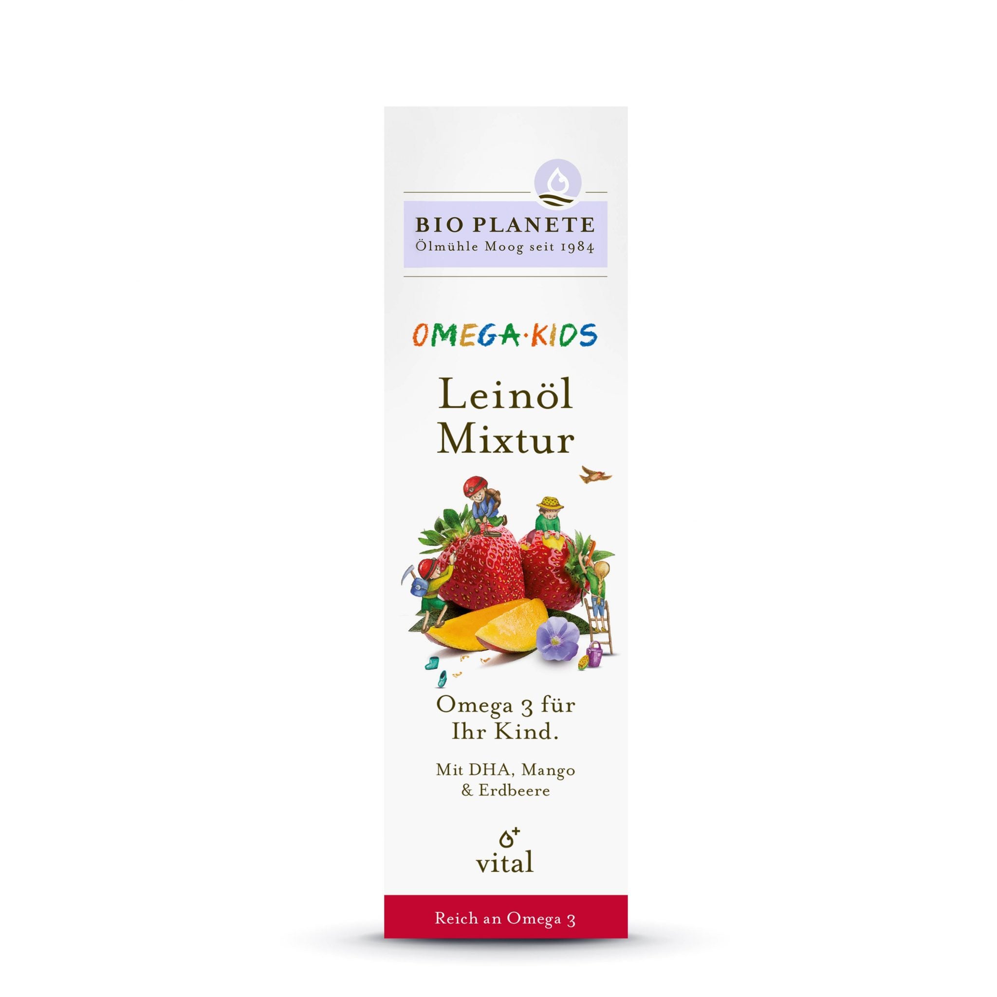 Omega Kids cu mango si capsuni este atat de delicios incat copiilor le place sa-l manance cu iaurt si cereale - si este atat de usor cu acizii grasi omega-3 (acidul alfa-linolenic si DHA).