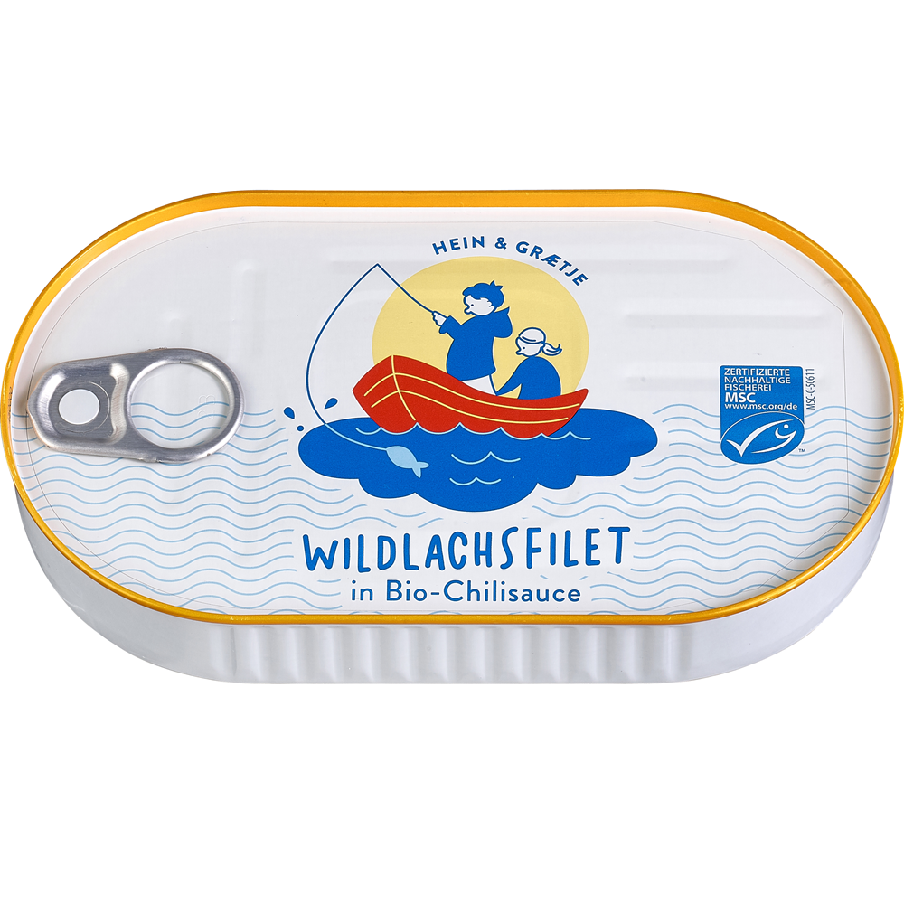 File de Somon Salbatic in Sos de Rosii si Chilli.Conserva Hein & Graetje detine certificarea MSC (Marine Stewardship Council).