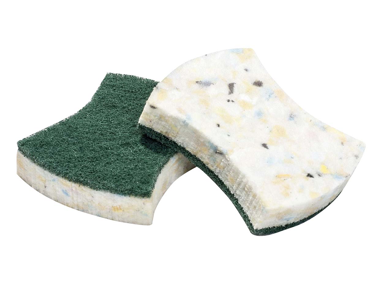 Pentru partea absorbanta, a fost reciclata spuma 100% post-consumata din canapele si mobilier vechi, partea de curatare consta din sticle PET reciclate.