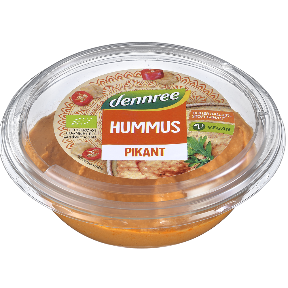 Humus Bio picant vegan de la Dennree este alegerea excelenta pentru un aperitiv savuros!