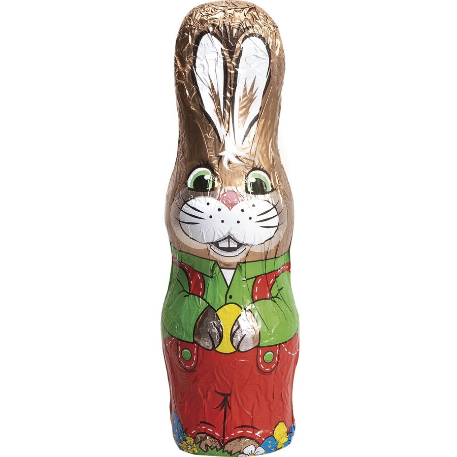 Iepuraș de Paște făcut din cea mai bună ciocolată organică cu lapte, ambalat în folie de staniol pentru copii.