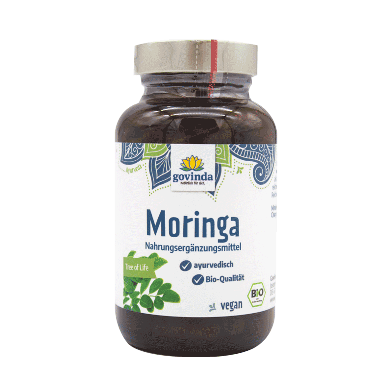 Înapoi la rădăcini – înapoi la rădăcinile noastre ayurvedice, care au stârnit ideea pentru Govinda. De aceea, am dori să vă recomandăm suplimentele noastre alimentare ayurvedice. În învățăturile ayurvedice, moringa este considerată o plantă importantă și se spune că echilibrează dosha Vata și Kapha.