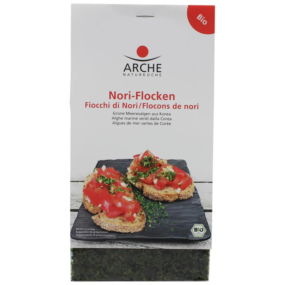 Arche Nori fulgi. Din cultura organică. Alga verde se mai numește și Ao Nori. Presărați algele uscate peste preparate cu cereale și paste, supe sau salate și bucurați-vă de nota de aromă de mare.