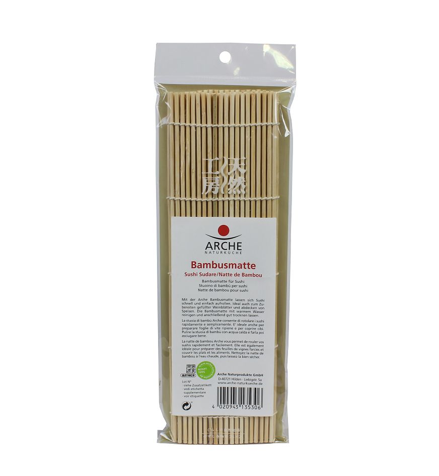 Cu acest covor format din betisoare fine de bambus, sushi poate fi preparat rapid si usor. Batoanele de bambus din aceasta traditionala planseta de bambus „Makisu” sunt cusute cu fire de bumbac. Nu numai ca acest aspect arata bine, dar ofera si elasticitatea potrivita pentru a modela bine rulourile de orez. In cele din urma, ruloul de sushi este presat usor cu aceasta planseta de sushi si astfel se lipeste optim.Covorasul de bambus este refolosibil, se clateste pur si simplu cu apa calduta si se lasa la uscat.