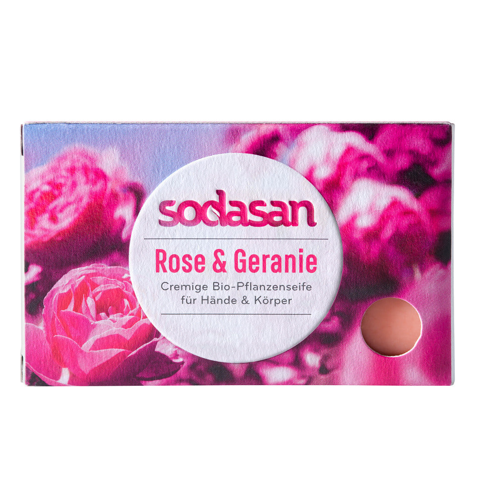Sapun Solid Cremos Bio pentru Maini si Corp cu Trandafir si Geraniu Sodasan 100 g